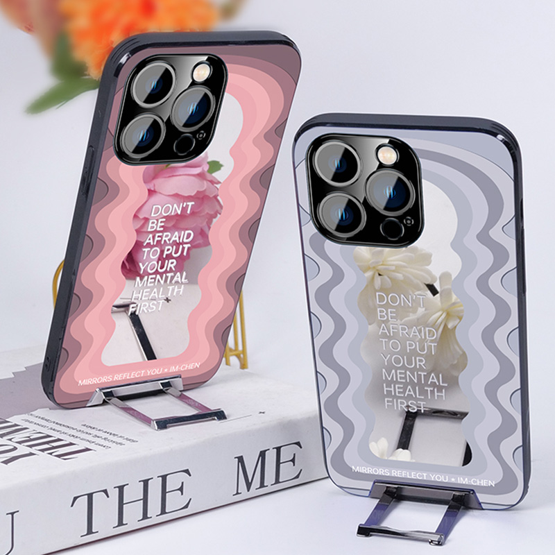 Acrylic Mirror Case For iPhone 16 15 14 With Hidden Stand IPS626