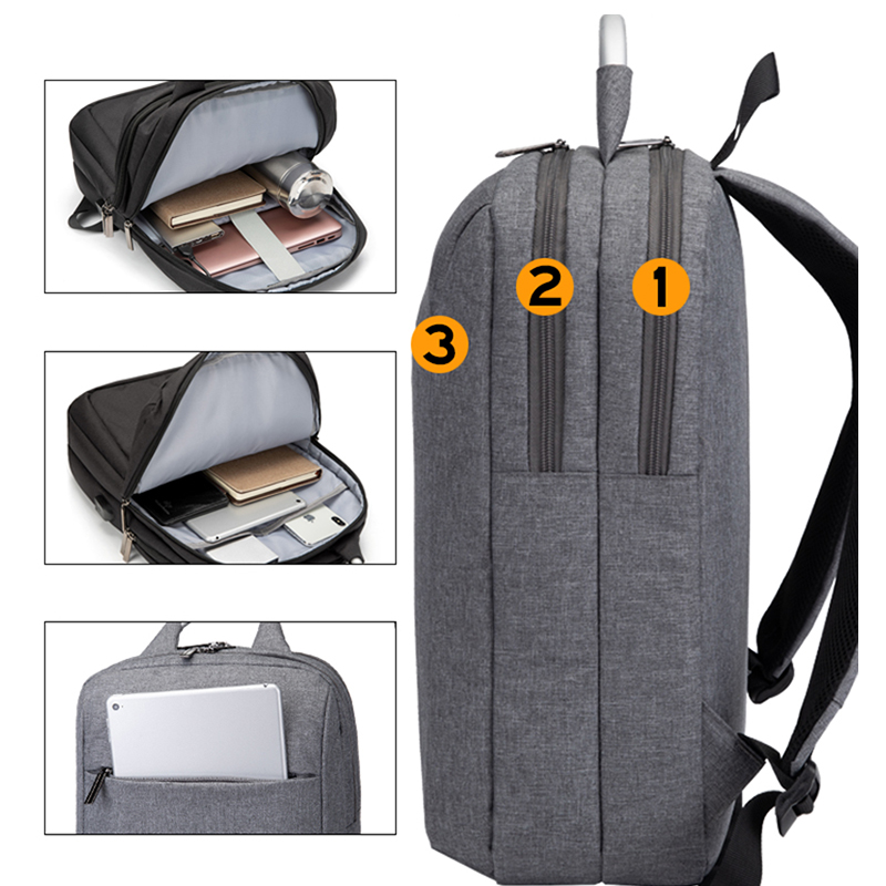 This Backpack can put your Macbook and iPad into it. Product size: Length*Width*High=30*12*42cm. You can choose Black, Gray.