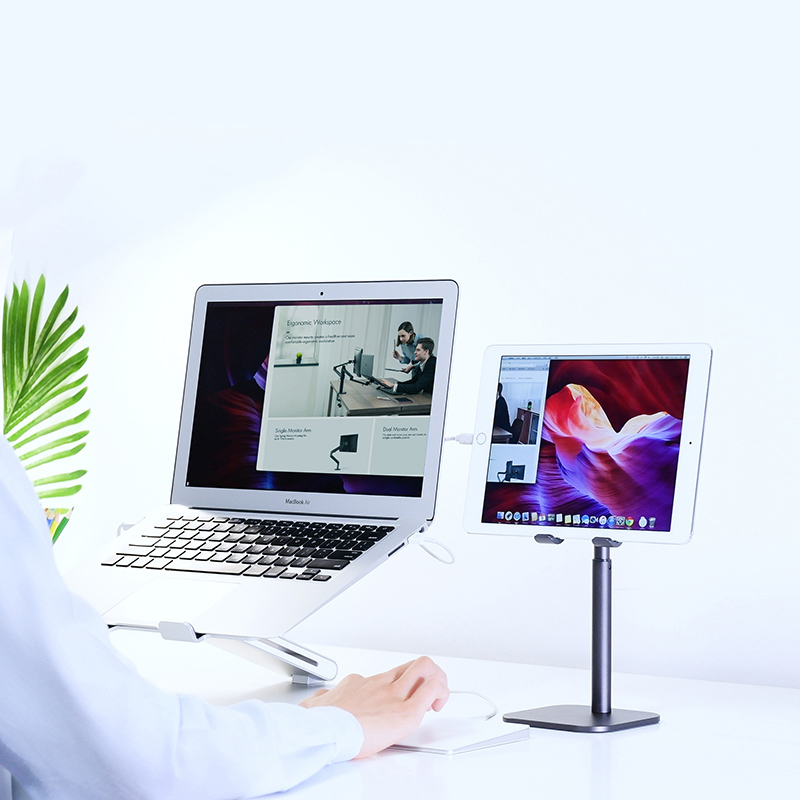 This aluminum lazy bracket stand suits for iPhone and iPad that size range from 5.5~9.7" device. You can even charge your device with this stand.