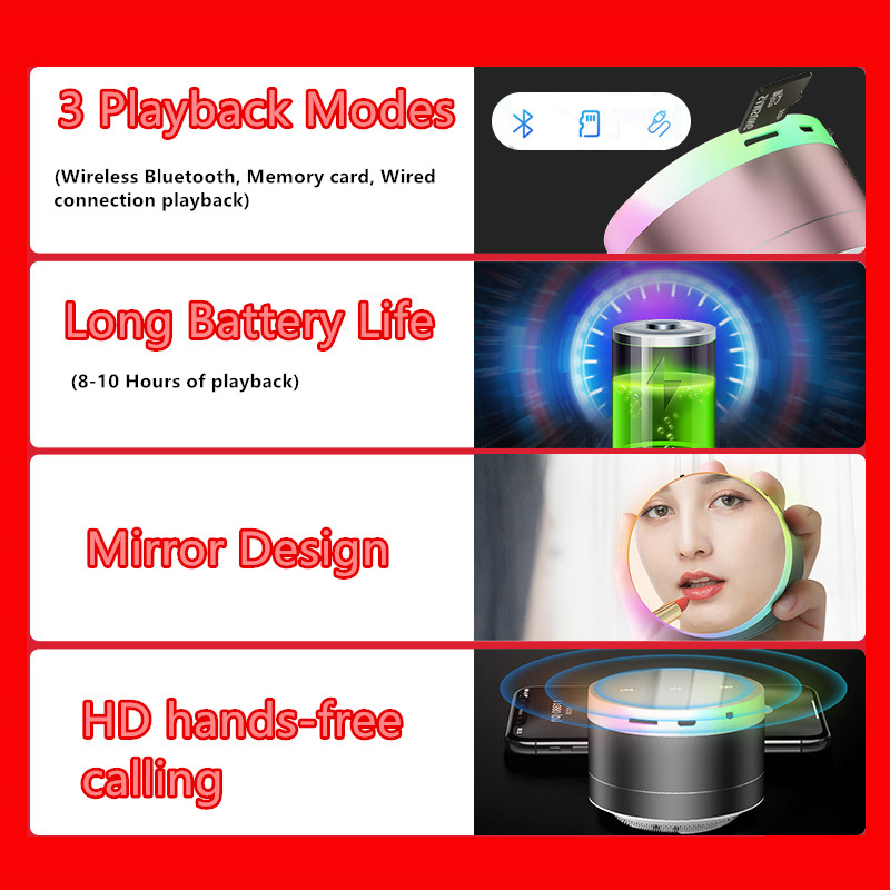 This bluetooth speaker can play for 8-10 hours, it can be connected via Bluetooth/Insert Memory card/Connect with USB line.