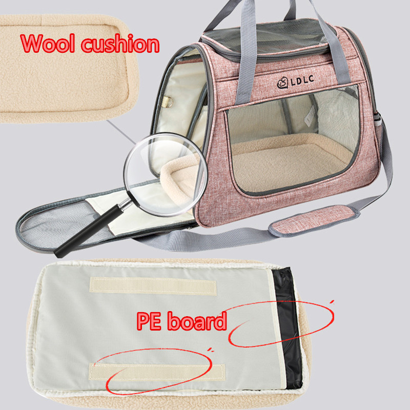 There are 4 color for the dog/cat handbag, Grey, Pink, Black, Ginger. The bag can fold up, easy to carry outside.