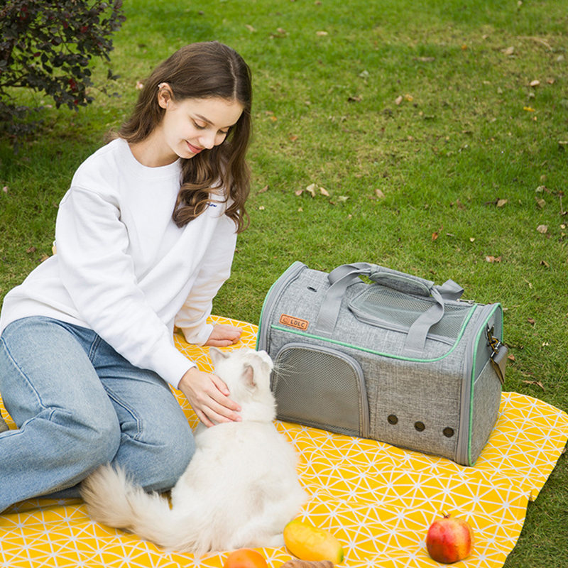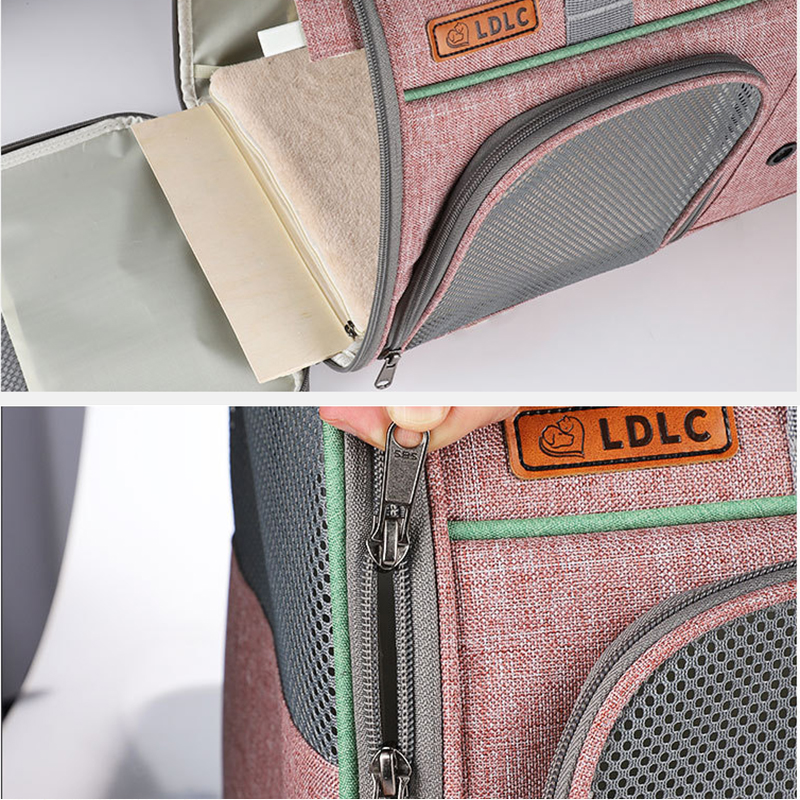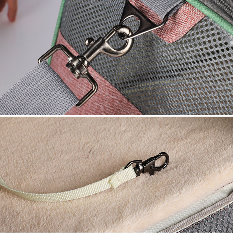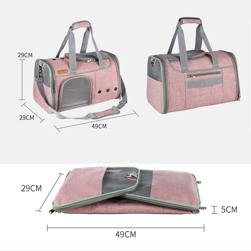 There are 4 color for your pet, Pink, Grey, Blue, Khaki. The bag can fold up, easy to carry outside.