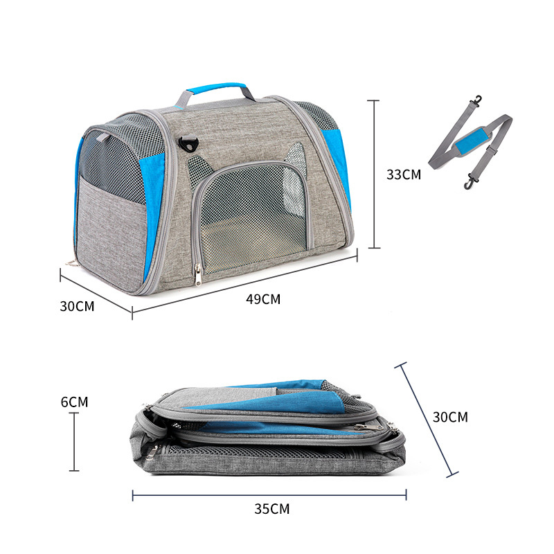 There are 3 color for your cat, Light grey, Dark grey, White. The bag can fold up, easy to carry outside.
