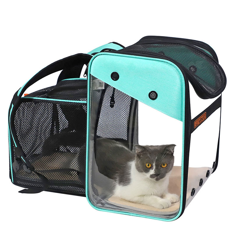 There are 4 color for your pet, Sky blue, Pink, Grey, Navy blue. The bag can fold up, easy to carry outside.