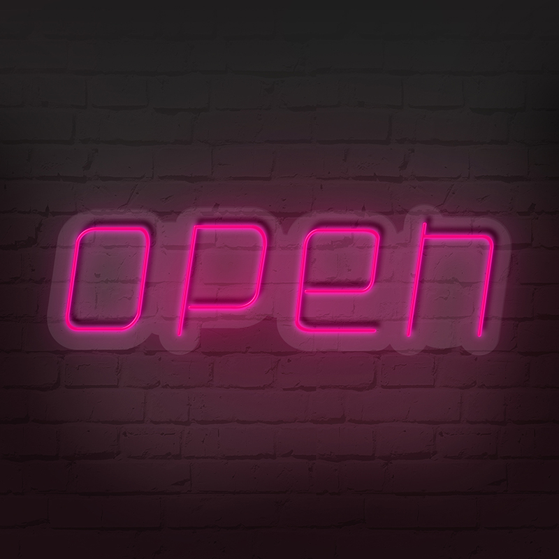 The quintessential symbol of accessibility and invitation. With its bright glow and classic design, this neon sign welcomes customers with warmth and charm.